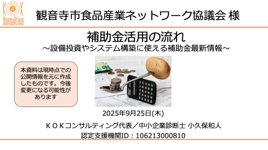 9月25日は、ご依頼いただいて、協議会様向けに「補助金活用の流れ〜設備投資やシステム構築に使える補助金最新情報〜」についてオンラインでお話させていただきました。