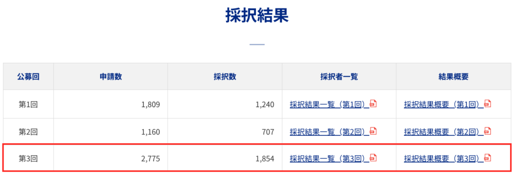 11月28日、中小企業省力化投資補助金ホームページで、省力化投資補助金(一般型)第3回公募の採択結果が公表されました。申請数2,775/採択数1,854/採択率66.8%と、第2回公募より申請数が大幅に増えたものの、かなり高い採択率になりました。採択された事業者様おめでとうございます。KOKコンサルティングで事業計画策定をご支援させていただいた事業者様(3社)もすべて採択されていました。