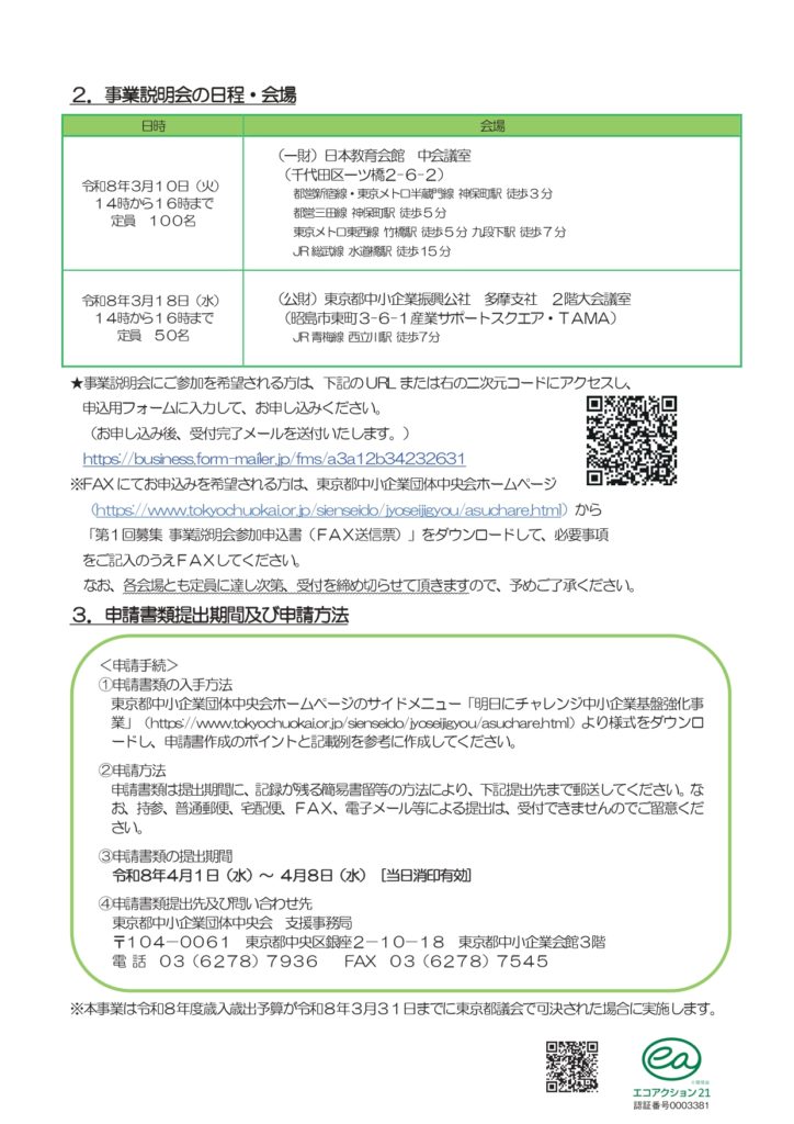 明日にチャレンジ中小企業基盤強化事業の令和8年度第1回公募が開始されました