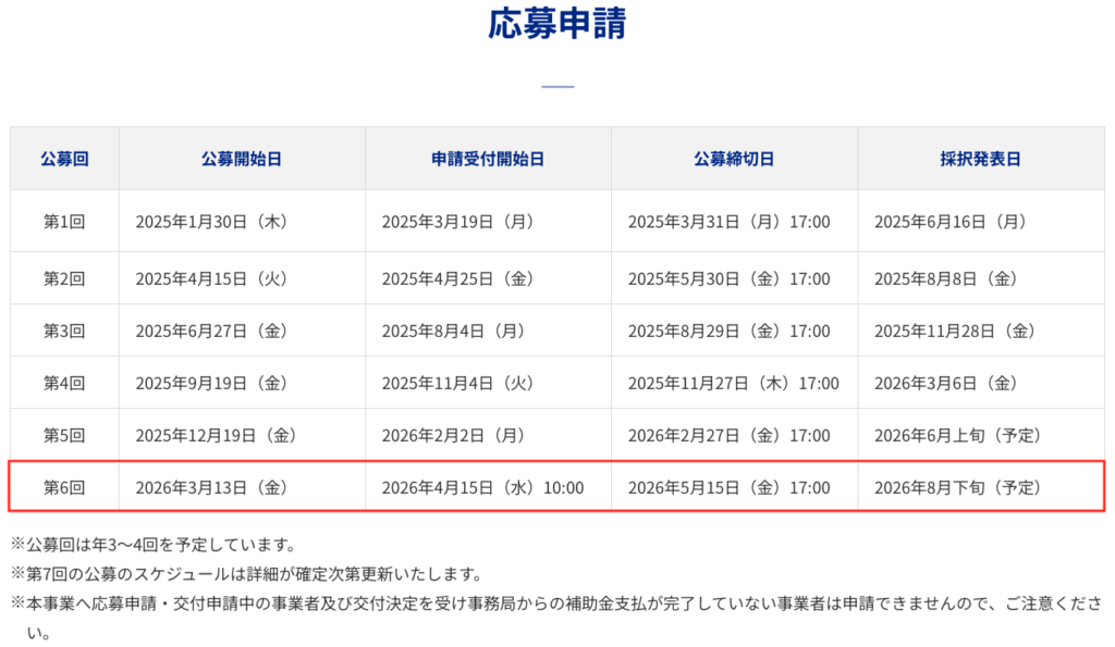 4月8日、中小企業省力化投資補助金ホームページで、省力化投資補助金(一般型)のスケジュールが更新され、これまで5月中旬となっていた第6回公募の申請〆切が5月15日(金)と明確になりました。
